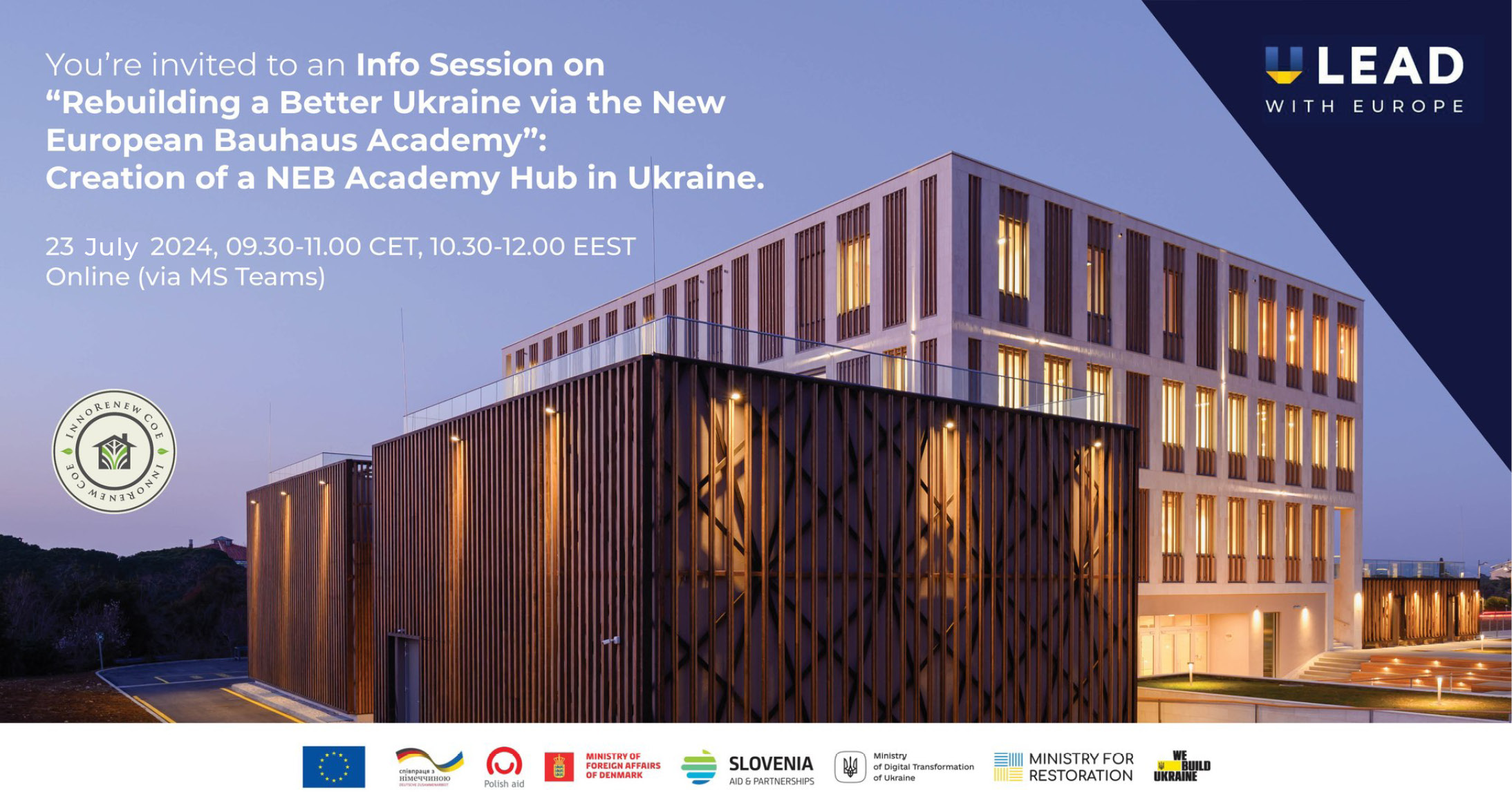 The goal of this event is to introduce a best practice example of a NEB Hub, the procedure to establish a hub, and share the information on 3-day long training taking place in Izola, Slovenia for potential future trainers of the NEB Academy Hub in Ukraine. Furthermore, other activities where stakeholders from Ukraine are invited to participate will be presented.