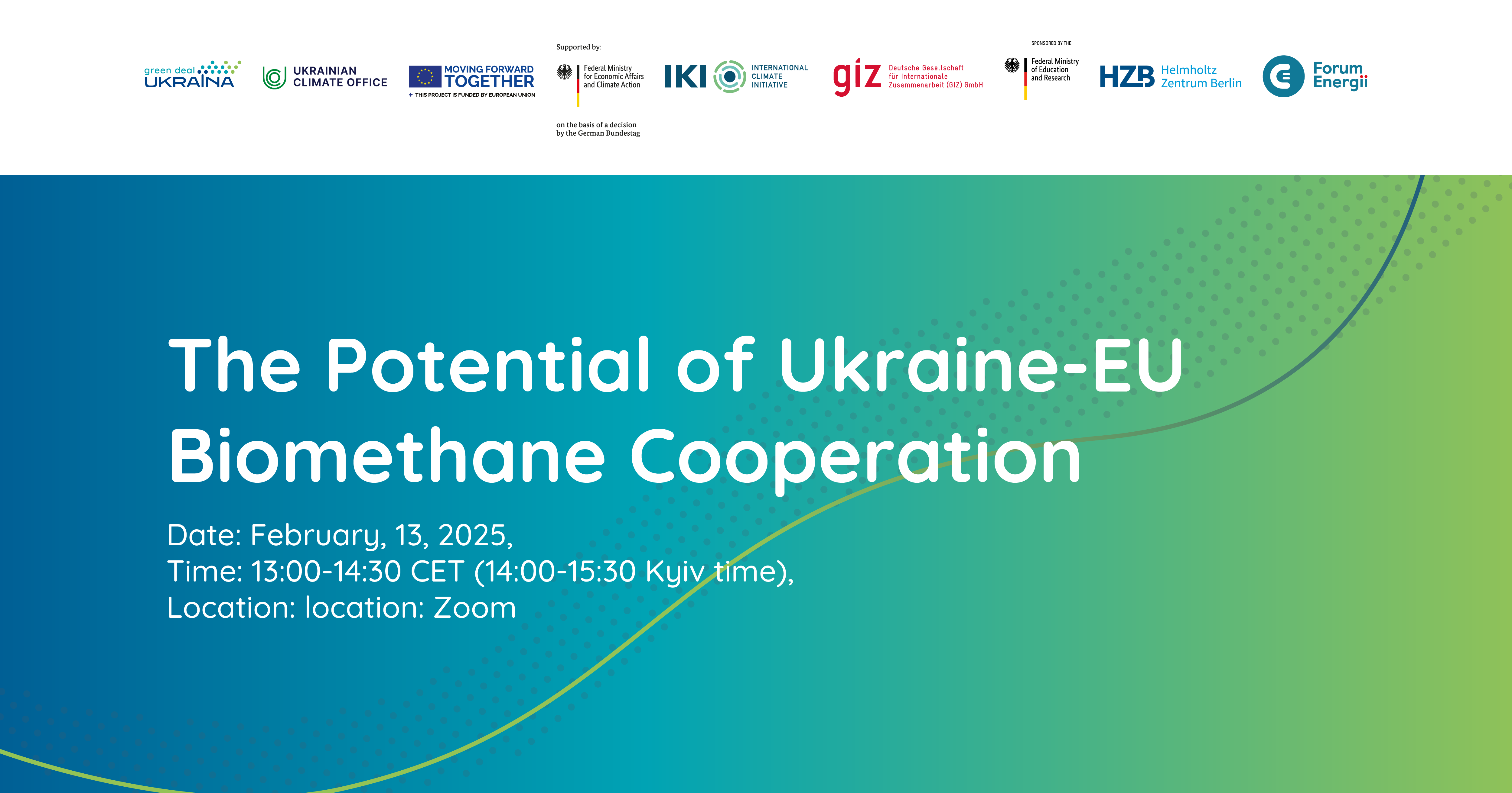 Ukrainian Climate Office invites you to the webinar, jointly organized by the Green Deal Ukraïna project, Helmholtz-Zentrum Berlin and the Forum Energii, dedicated to the potential of Ukraine – EU biomethane cooperation.
