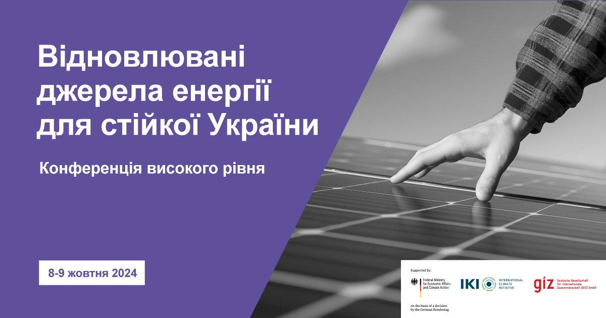 8-9 жовтня у Києві Проєкт «Відновлювані джерела енергії для стійкої України» (#R2U) проведе конференцію для представників/-ць політичних кіл та громадськості задля забезпечення енергетичної незалежності України через рішення у сфері відновлювальної енергетики.